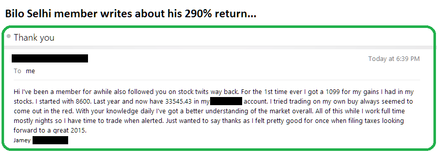 *Bilo Selhi is not registered as a broker-dealer or investment adviser. Any stock, option or crypto assets mentioned on the site or any emails or any communication from Bilo Selhi represents his own opinions and should not be relied upon for purposes of effecting securities transactions or other investing strategies, nor should they be construed as an offer or solicitation of an offer to sell or buy any security, nor does it constitute investment advice. Stock / options / crypto trading / investing involves large risk and may result in 100% loss of capital. Don't trade with money you can't afford to lose. Bilo Selhi does not verify the results of any subscribers' trades. Subscriber testimonials, tweets and comments represent their own opinions. Read more DISCLAIMER.